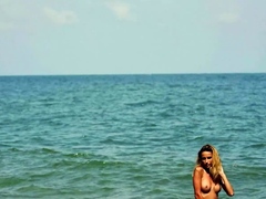 Petite blonde MILF beauty Cara Mell posing nude on the beach